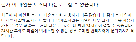 비로그인 상태로 워크래프트 다운로드용 구글 드라이브 페이지에 접속하면 무조건 '다운로드 횟수가 초과하여 다운로드할 수 없다'고 뜨는 것으로 확인했습니다.