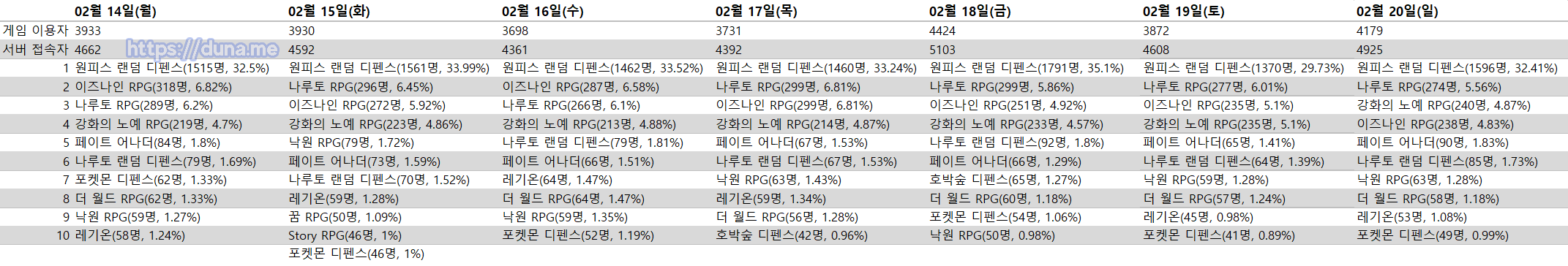 통계 자료 게시 지연 (0) 2022.03.13 2월 5주차: 0228~0306 (0) 2022.03.07 2월 1주차: 0207~0213 (0) 2022.02.16 1월 5주차: 0131~0206 (0) 2022.02.08 1월 4주차: 0124~0130 (0) 2022.02.01