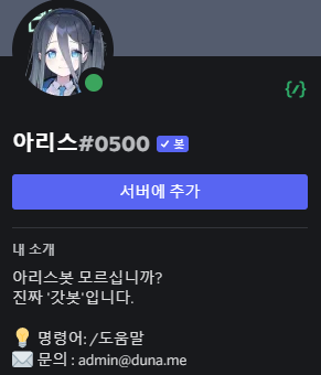 디스코드 아리스봇입니다.