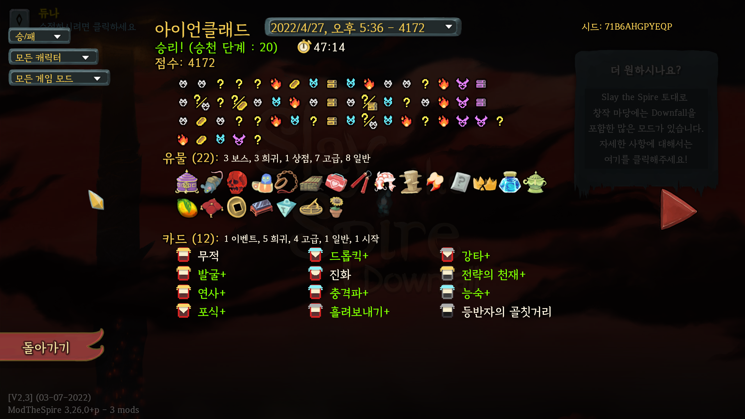 그래도 덱은 돈다 (0) 2022.07.05 그때 갑자기 가지가 나타나 모두 죽였다 (0) 2022.06.22 211016 리듬돌죽 (0) 2021.10.16 병신겜 (0) 2021.07.23 녹픽던 6챌 클리어 (0) 2020.10.27