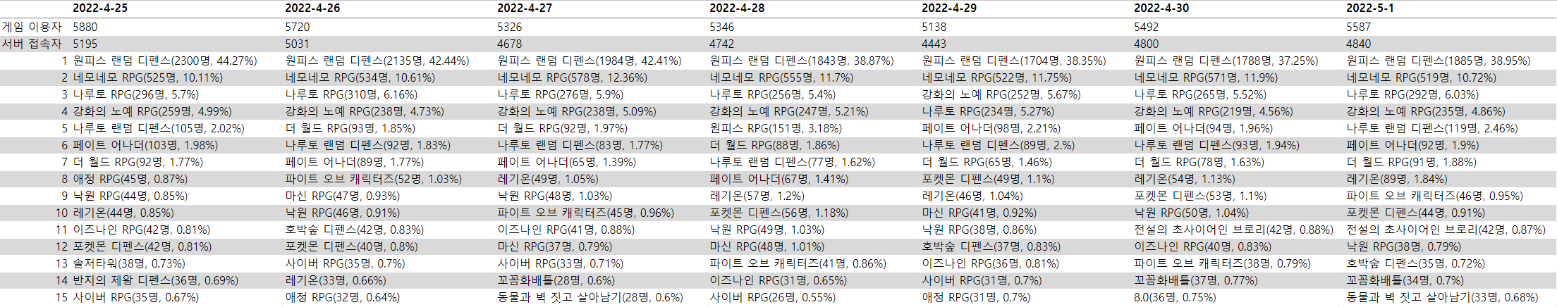 4월 4주차: 0425~0501업무/통계 2022. 5. 2. 17:56