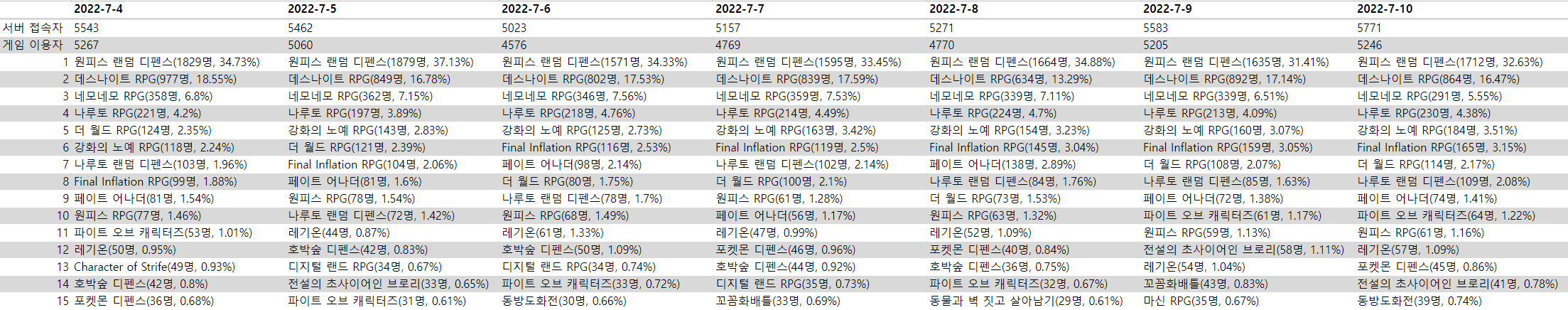 7월 1주차: 0704~0710업무/통계 2022. 7. 11. 07:53