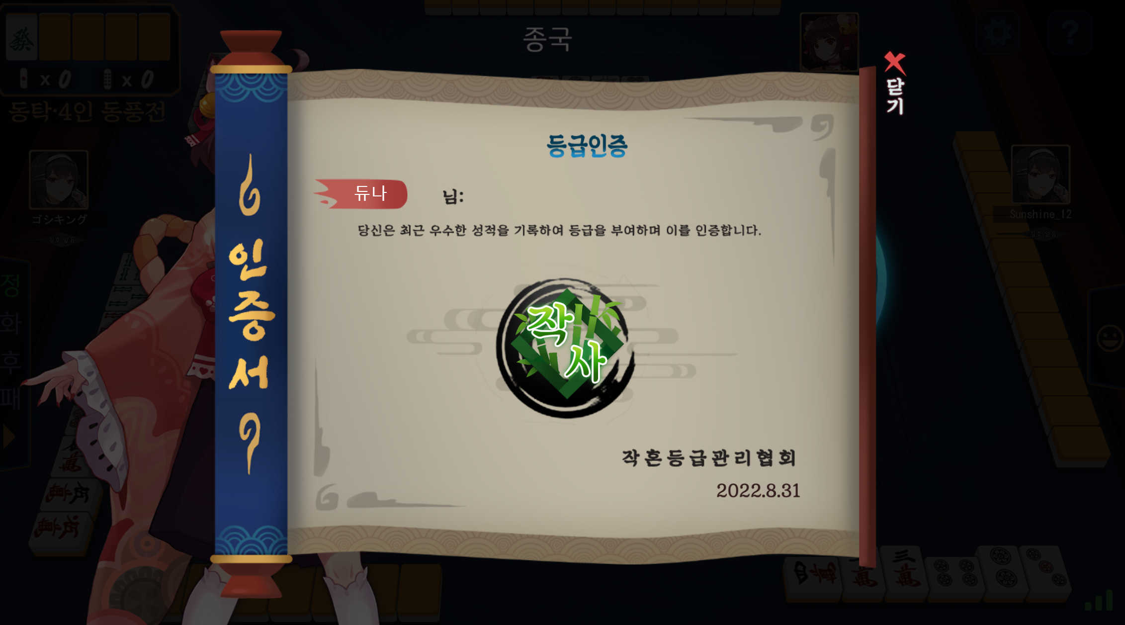 승급하고 또 사기마작함