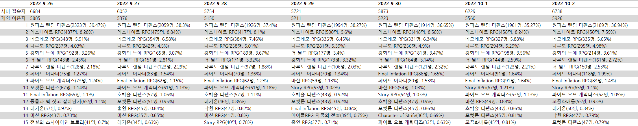 9월 4주차: 0926~1002업무/통계 2022. 10. 5. 22:51