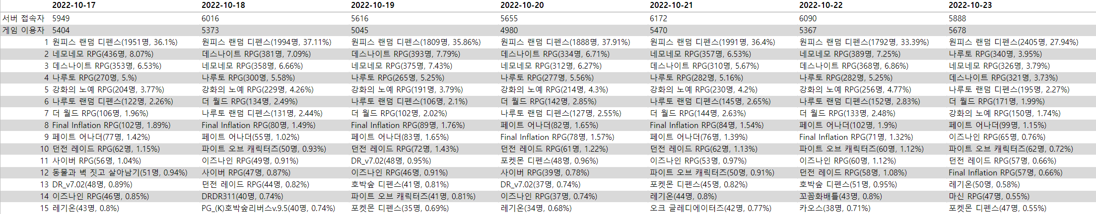 10월 3주차: 1017~1023업무/통계 2022. 10. 29. 12:10