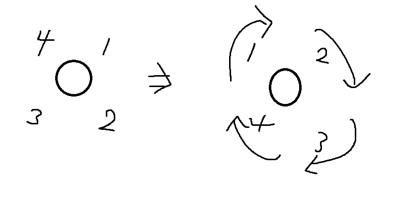 그림으로 표현하면 대충 이런 식으로 벤다고 할 수 있다. 기존 방향과 같은 칸을 누르면 칼을 역으로 잡는다. 예를 들어서 좌측 이미지 기준 1에 칼이 있는 상태에서 1을 누르면 3으로 간다.