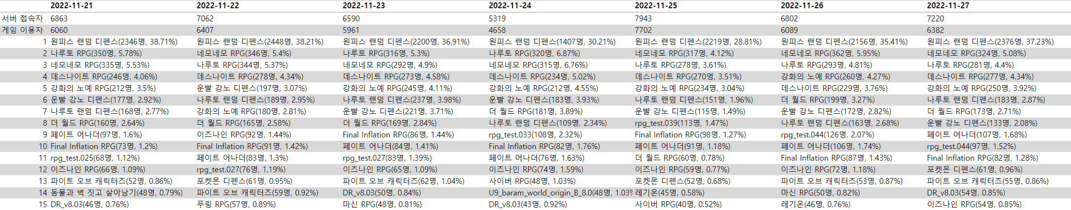 11월 4주차: 1121~1127업무/통계 2022. 11. 29. 06:55