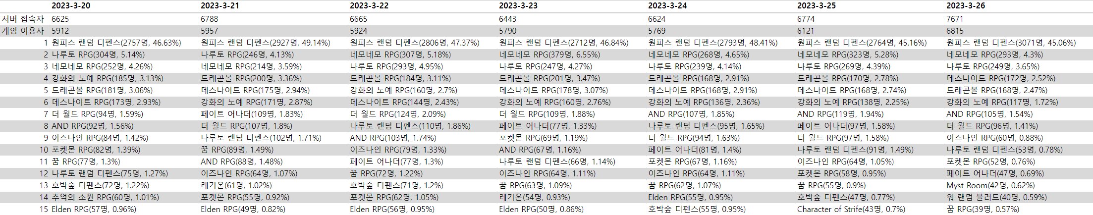 3월 4주차: 0320~0326업무/통계 2023. 3. 28. 10:33