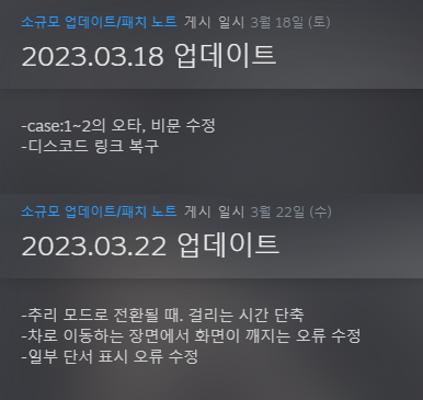 셋째로, 게임 전반에 걸쳐 오타가 너무 많았다. 공식 디스코드에서 오타 관련 제보만 엄청나게 나왔으니 그 양이 얼마나 됐는지는 짐작이 갈 것이다. '3월 22일 업데이트에는 오타 관련 내용이 없는데?'라고 생각할 수 있겠지만, 앞서 첨부한 이미지의 '관리정보'와 같은 것을 만드는 과정에서 아마 데이터를 복사-붙여넣기 했는지, B라는 인물에 대해서 A라는 인물의 정보가 들어간 것이 있었다.4 그런 것들을 수정하지 않았나 싶다. 다만 필자는 위의 두 업데이트가 있기 전에 게임을 플레이했기에 현재에는 어떤지 모르겠다.