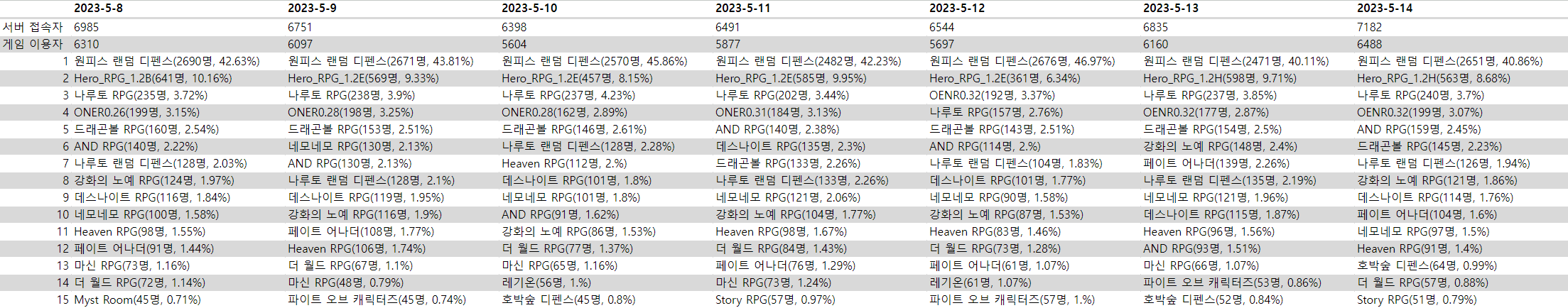 5월 2주차: 0508~0514업무/통계 2023. 5. 16. 13:31