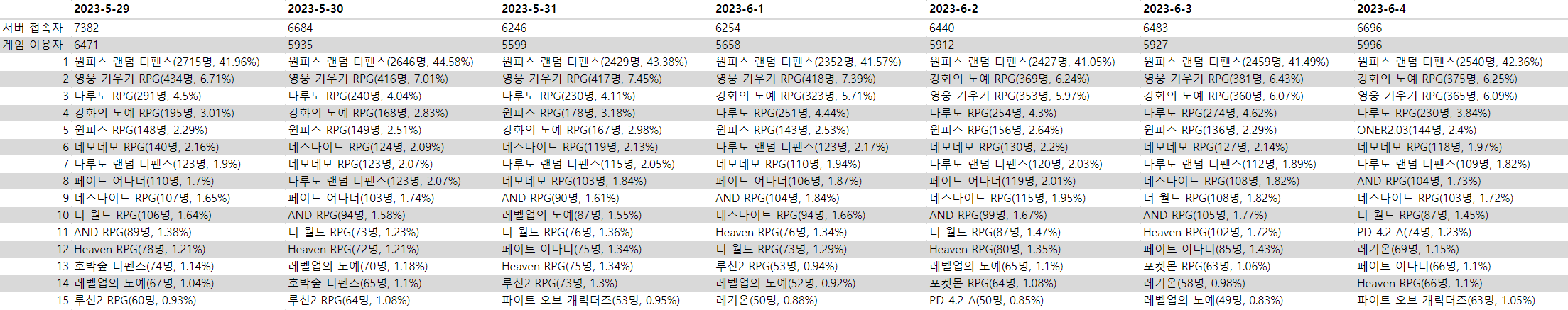 6월 1주차: 0529~0604업무/통계 2023. 6. 7. 11:32