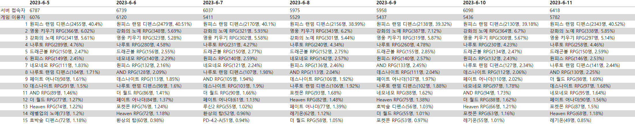6월 2주차: 0605~0611업무/통계 2023. 6. 15. 18:34