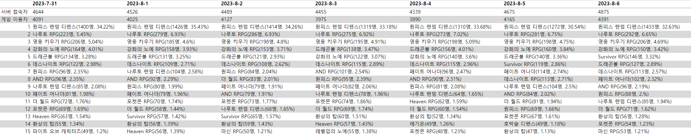 8월 1주차: 0731~0806업무/통계 2023. 10. 3. 16:42
