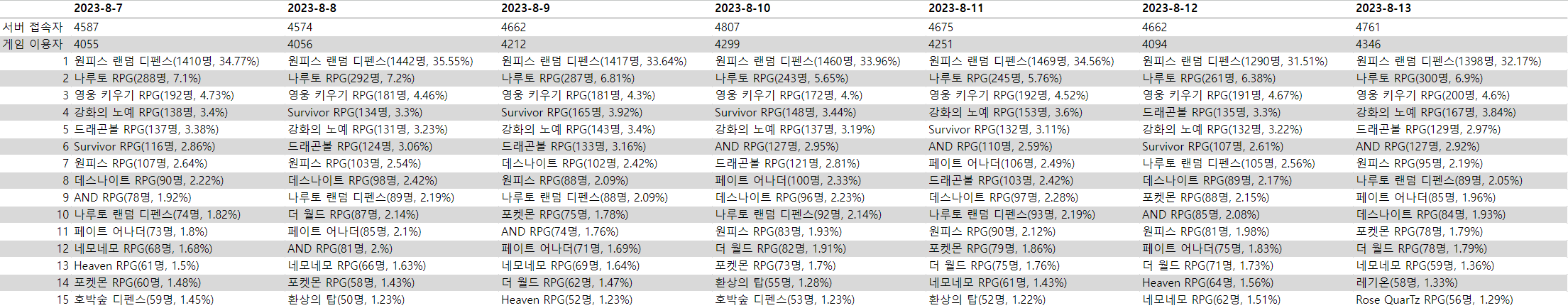 8월 2주차: 0807~0813업무/통계 2023. 10. 3. 16:42