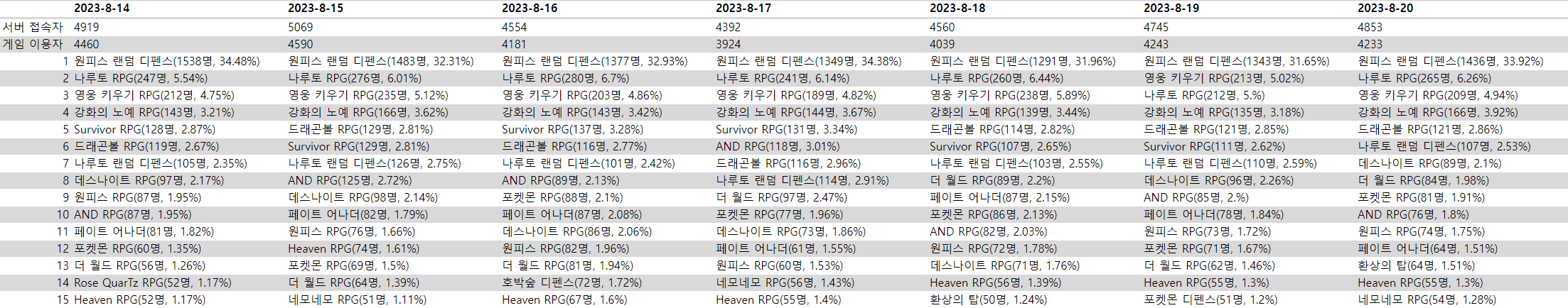 8월 3주차: 0814~0820업무/통계 2023. 10. 3. 16:42