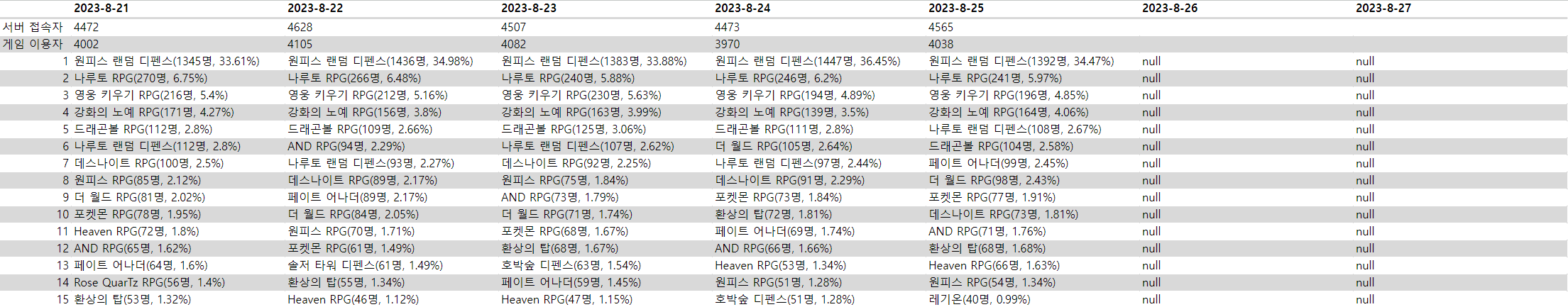 8월 4주차: 0821~0827업무/통계 2023. 10. 3. 16:43