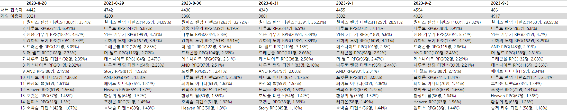 8월 5주차: 0828~0903업무/통계 2023. 10. 3. 16:43