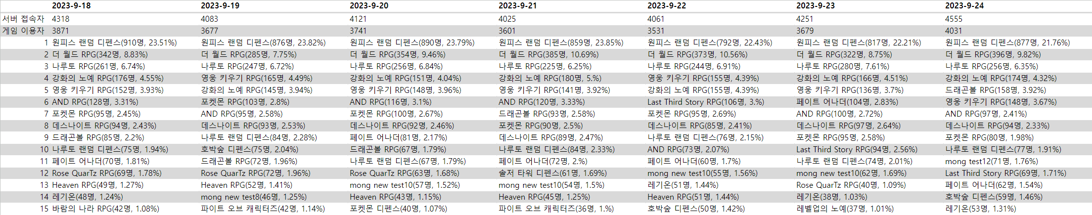 9월 3주차: 0918~0924업무/통계 2023. 10. 3. 16:44