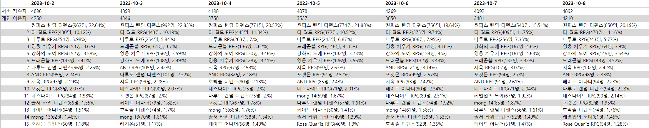 10월 1주차: 1002~1008업무/통계 2023. 10. 9. 00:23
