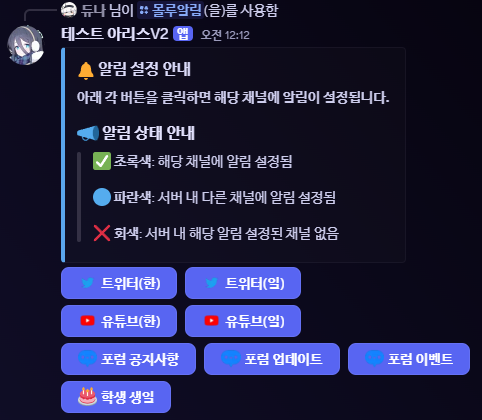 그래서 아리스에게 해당 권한이 없는 서버가 많을 겁니다.