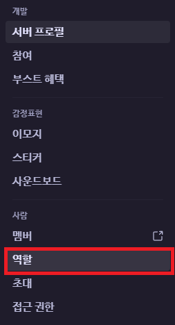 왼쪽 1) / 오른쪽 2) 이미지 1) 디스코드 서버 설정에 들어가 주세요.