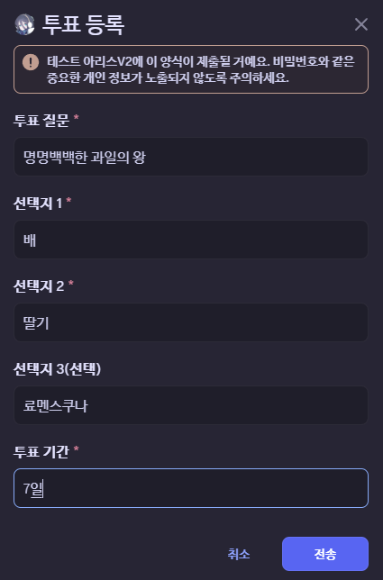 디스코드에 익명 투표가 없어서 추가함