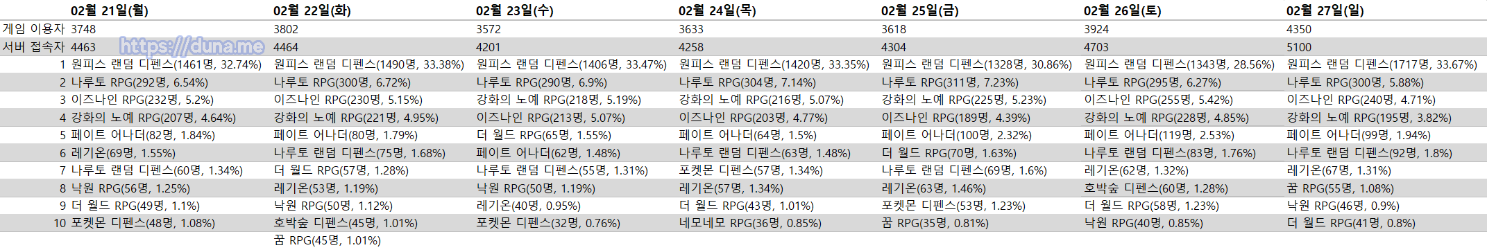 카테고리 없음 2월 3주차: 0221~0227 듀나 2022. 2. 28. 11:21 통계 업로드 관련 공지사항: https://duna.me/310 저작자표시 비영리 변경금지 (새창열림)