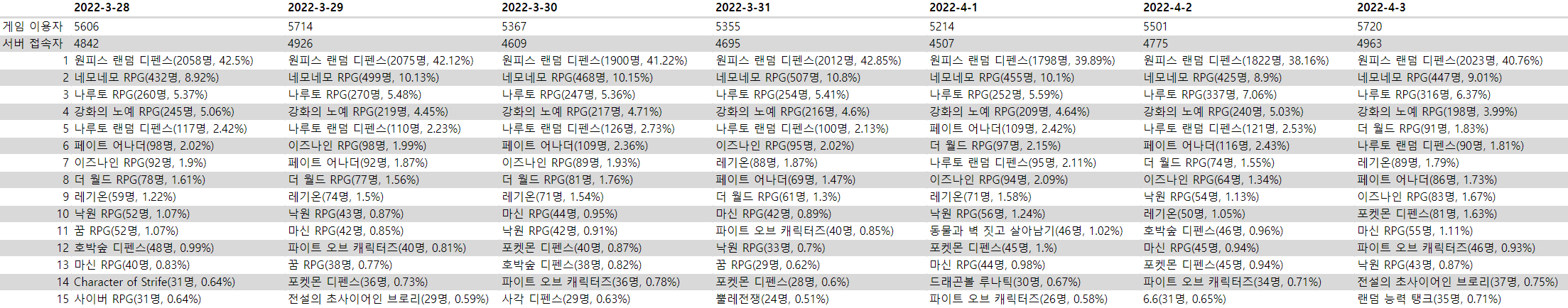 통계 공개가 늦어지는 점 죄송합니다. 구체적인 공개 방법을 생각하려니까 좀 골치가 아프네요.