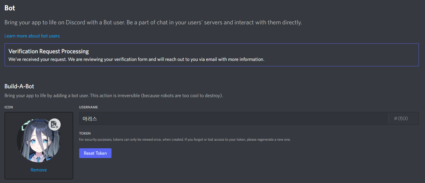 3월 26일인가 28일 즈음부터 시작해서 분명 7월 중순에 확인했을 때 인증 제한이 여전히 걸려 있었는데, 오늘 다른 봇 설정을 좀 하다가 인증 제한이 풀린 걸 발견했습니다.