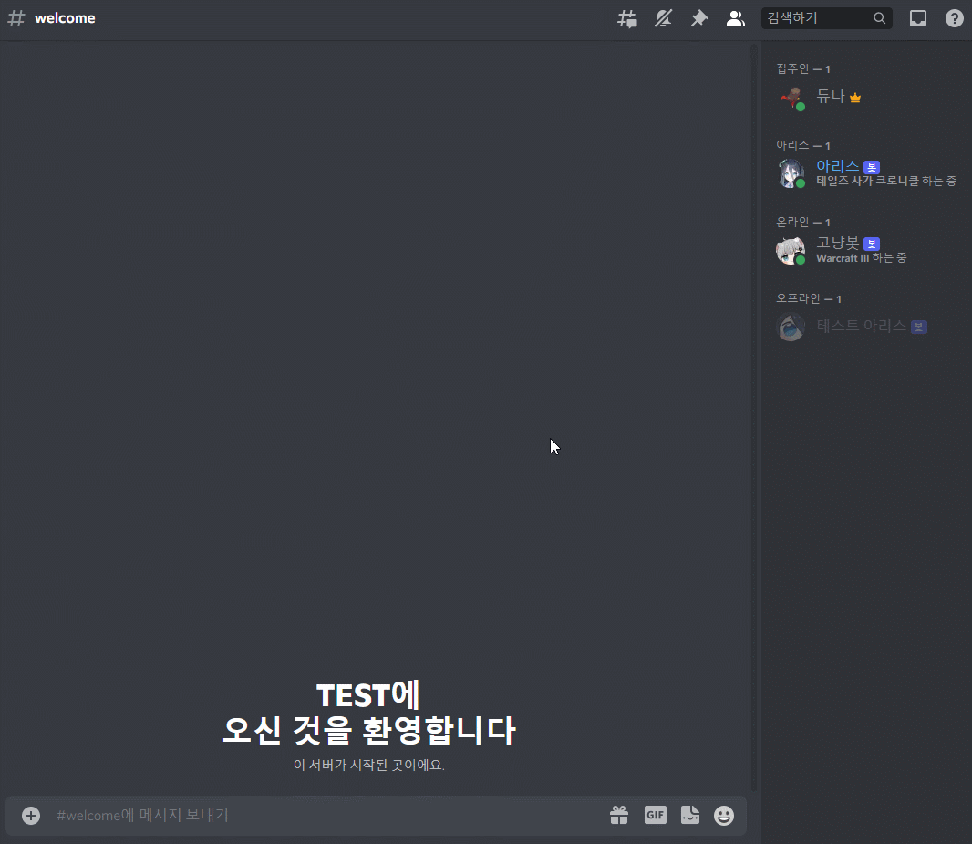 아리스봇/Introduction welcome message / Conversation 듀나 2022. 8. 6. 22:47 Welcome message for the Server Member Intent Conversation for the Message Content Intent 저작자표시 비영리 변경금지 (새창열림)