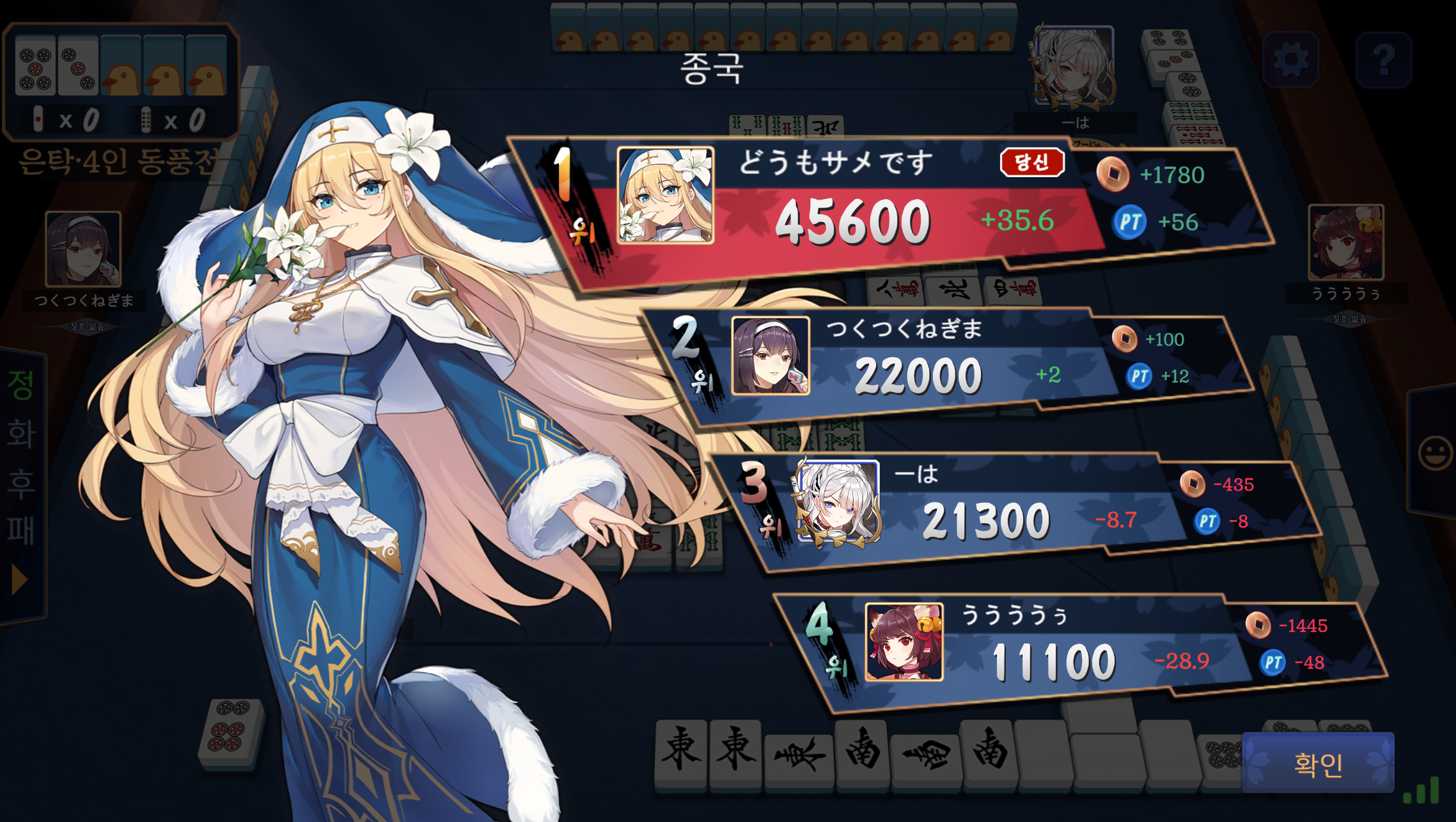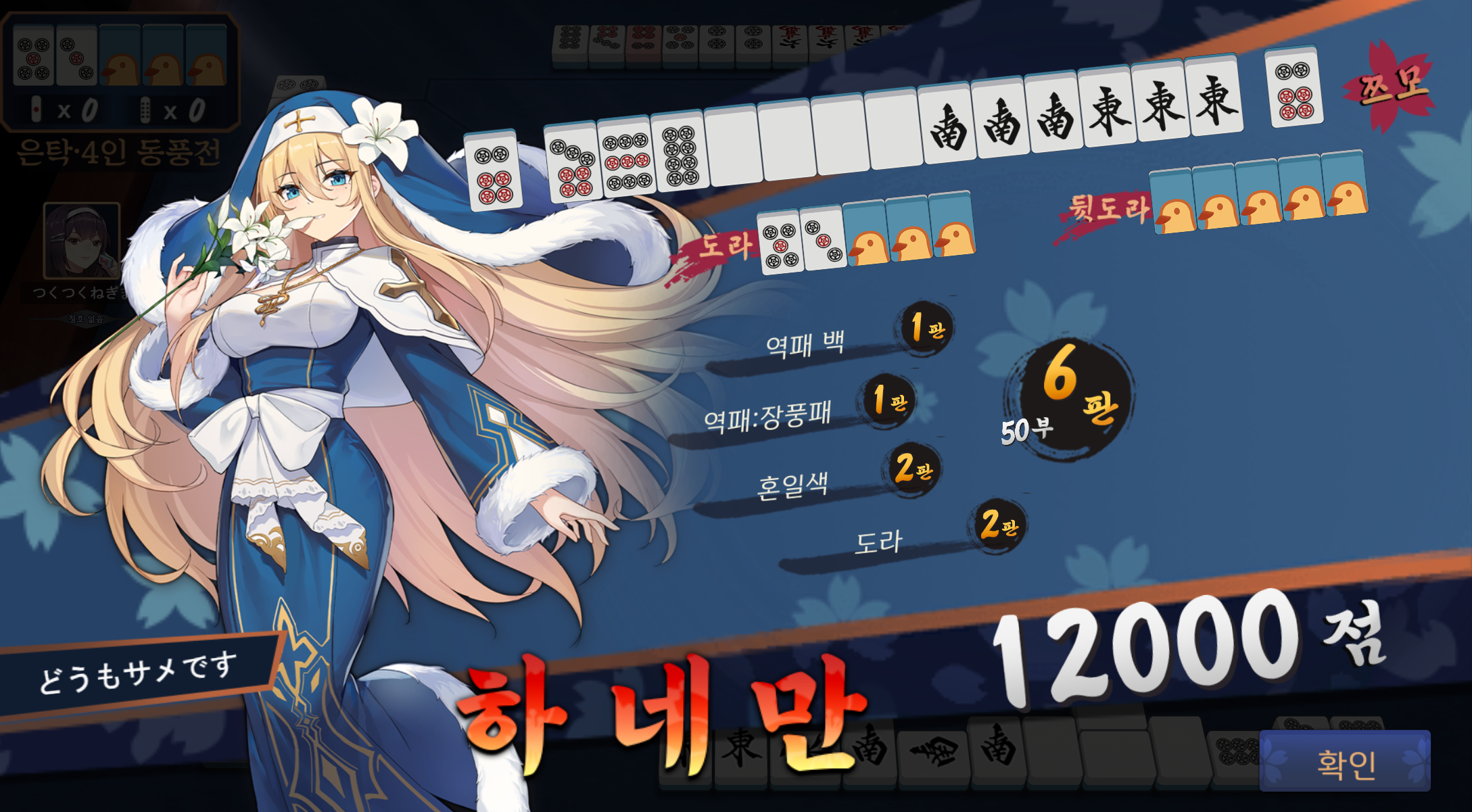 두 번째 배패는 혼일로 전환하려다가 너무 느려서 3순 69삭 양면 리치, 동순 대가 후발 리치한테 따임