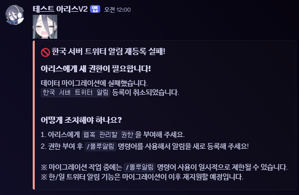 그래서 아리스에게 해당 권한이 없는 서버가 많을 겁니다.