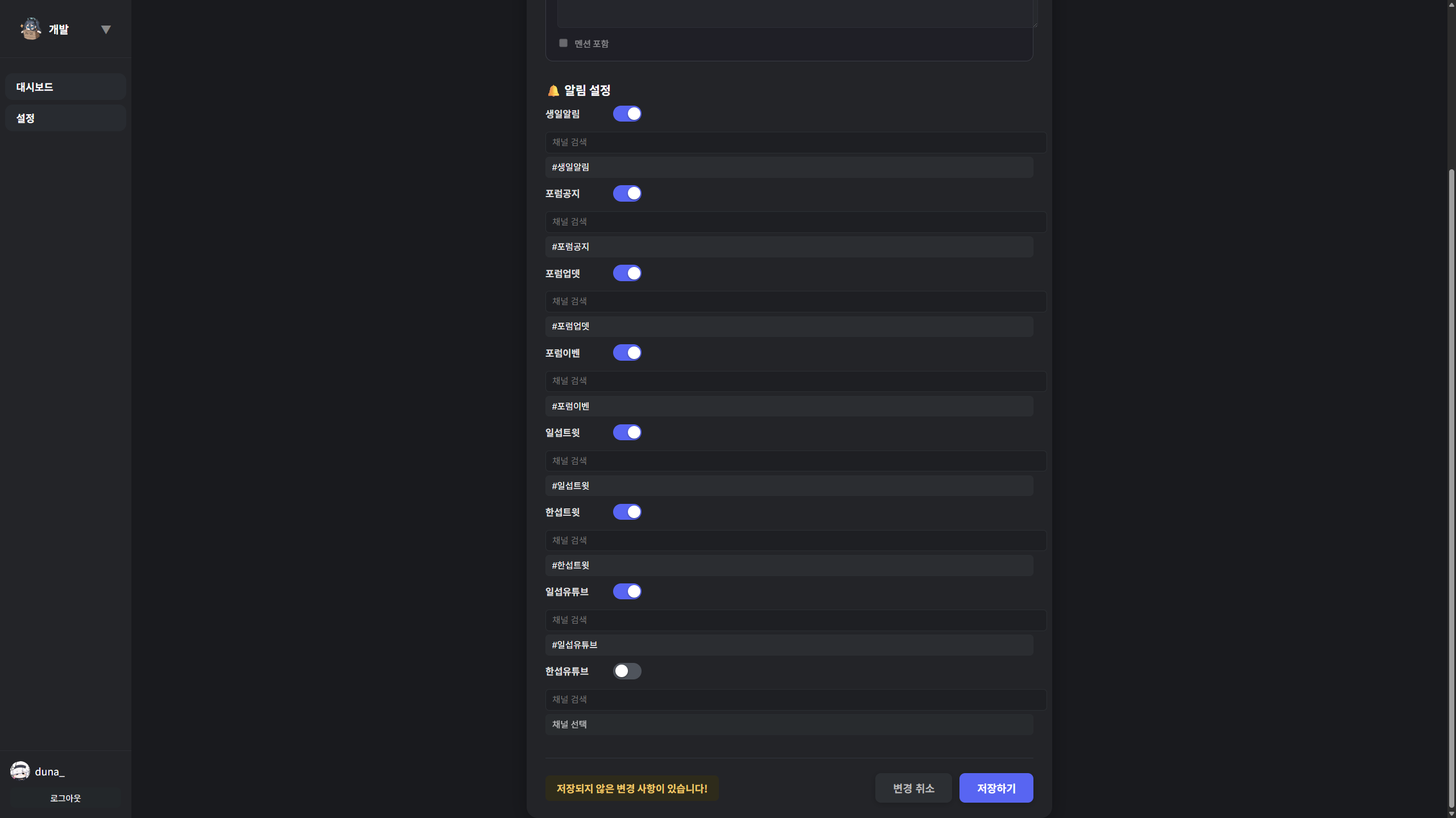 아리스봇/예정 웹 대시보드 듀나 2025. 6. 27. 11:59 서버 목록 설정 채널 검색 필터 기능 변경 안내 / 변경 취소 심심할 때 조금씩 만지고 있는데, 때려치울 수도 있음 저작자표시 비영리 변경금지 (새창열림)